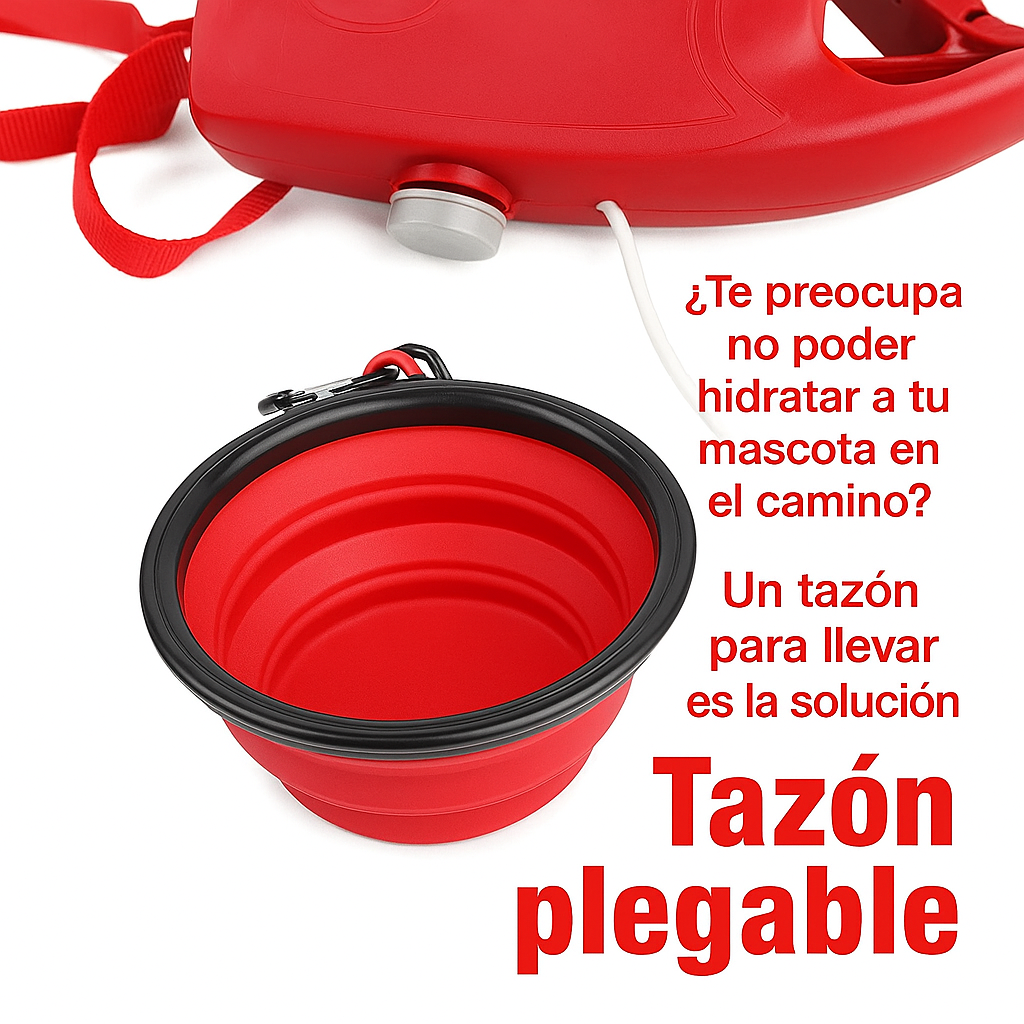 Con esta correa multifuncional tendrás todo lo que necesitas en un solo lugar: agua, tazón, bolsas y libertad para moverte sin cargar nada más.