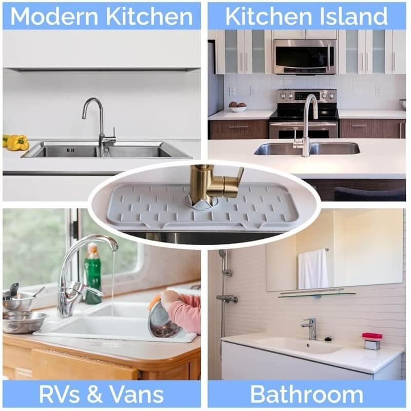 Menos humedad alrededor del grifo: Gracias a su diseño envolvente en silicona, absorbe y canaliza el agua directamente al fregadero.