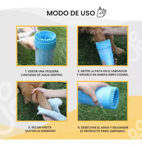 ¡Solo 20 a 30 segundos por pata! Es rápido, práctico y mucho más cómodo que toallas o pañitos.