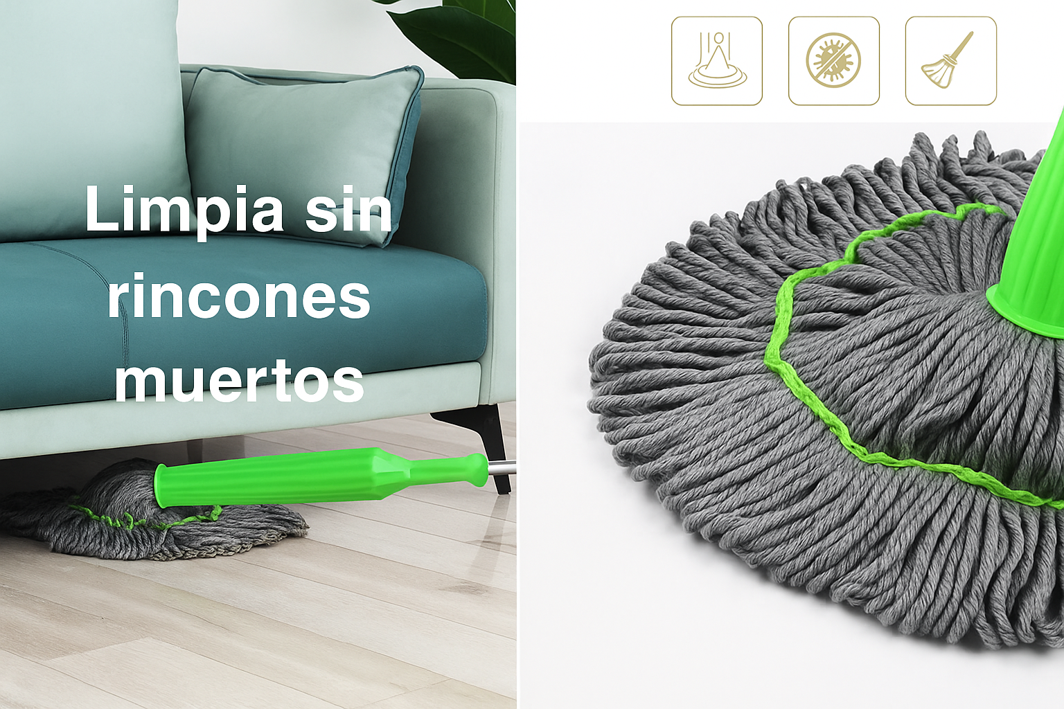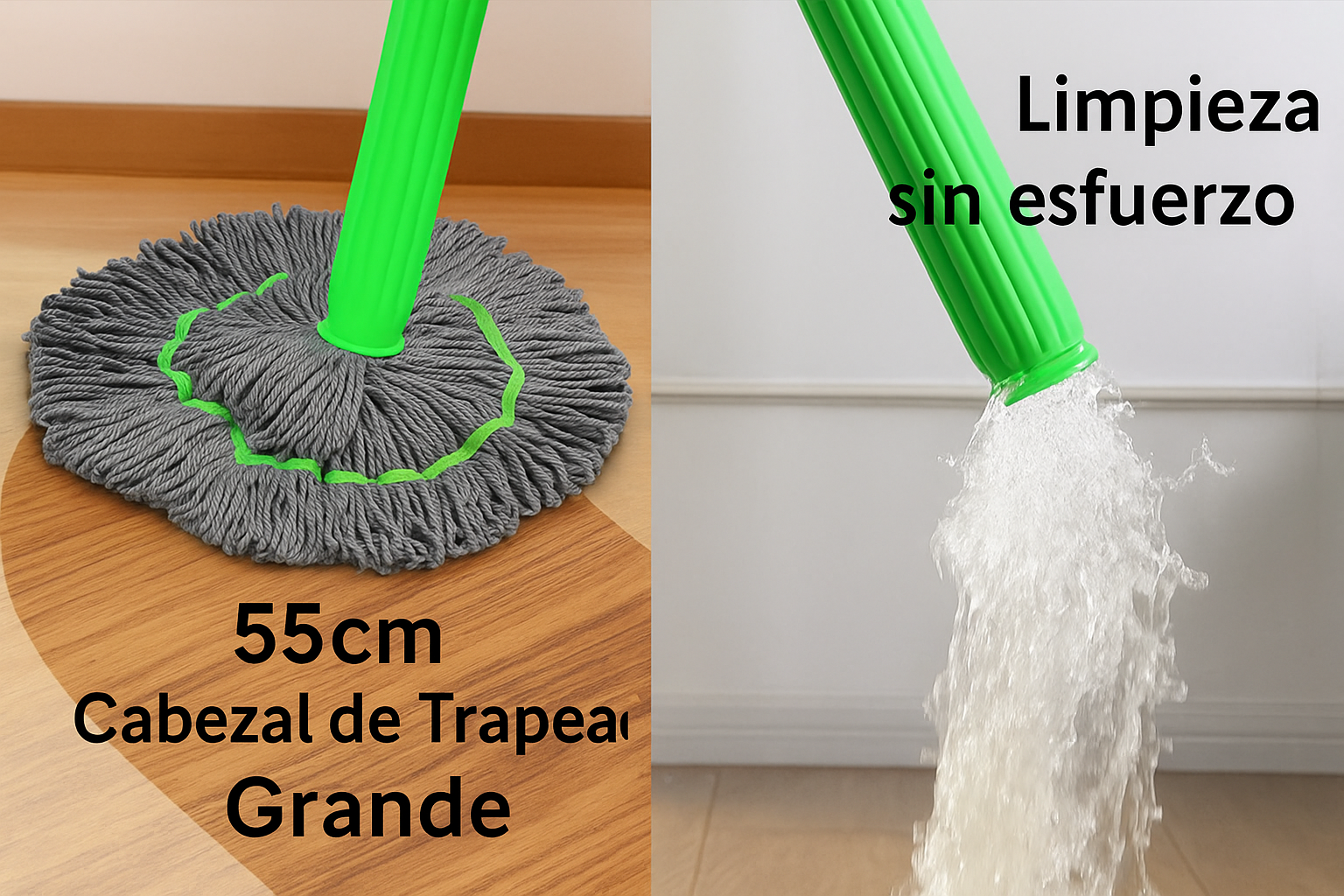 Descubre la forma más fácil y eficiente de limpiar tu hogar. Nuestro Trapeador Mágico escurre por ti, ¡dejando tus pisos impecables y tus manos secas!